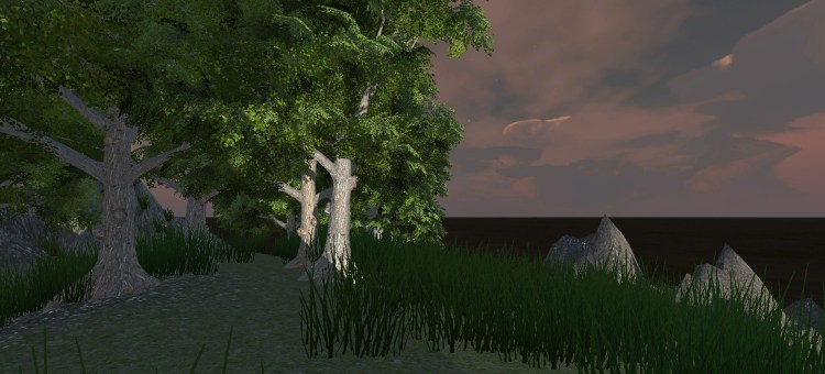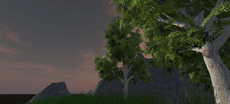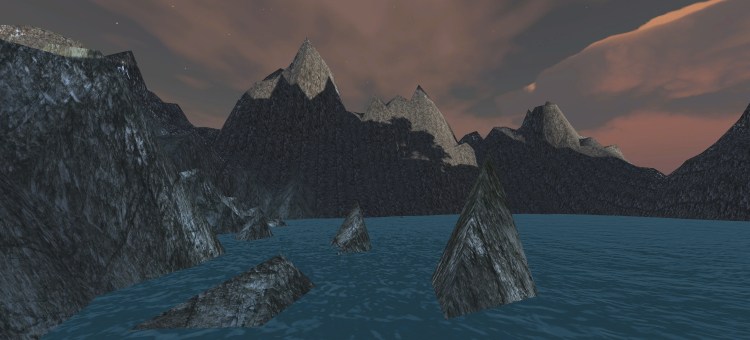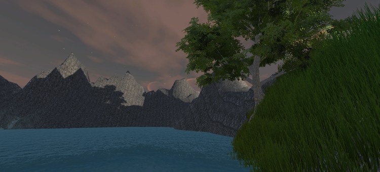 Today I played around in Unity a little bit more by myself, using the standard assets from Unity and a custom skybox from the asset store. I created the following environment: