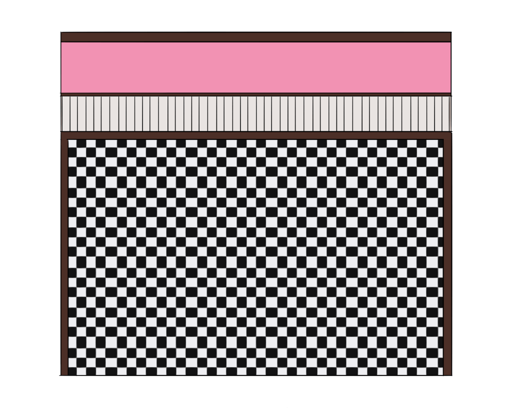 Today I finished the floor and wall tiles for the interior of the diner. I put them all together in an art program, to see if all the tiles line up and fit correctly.