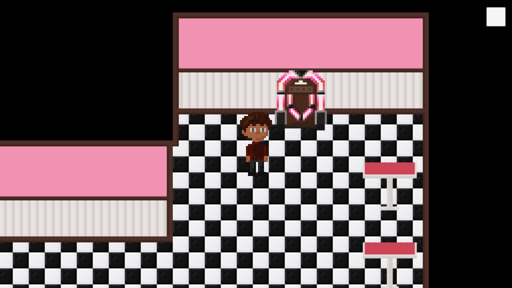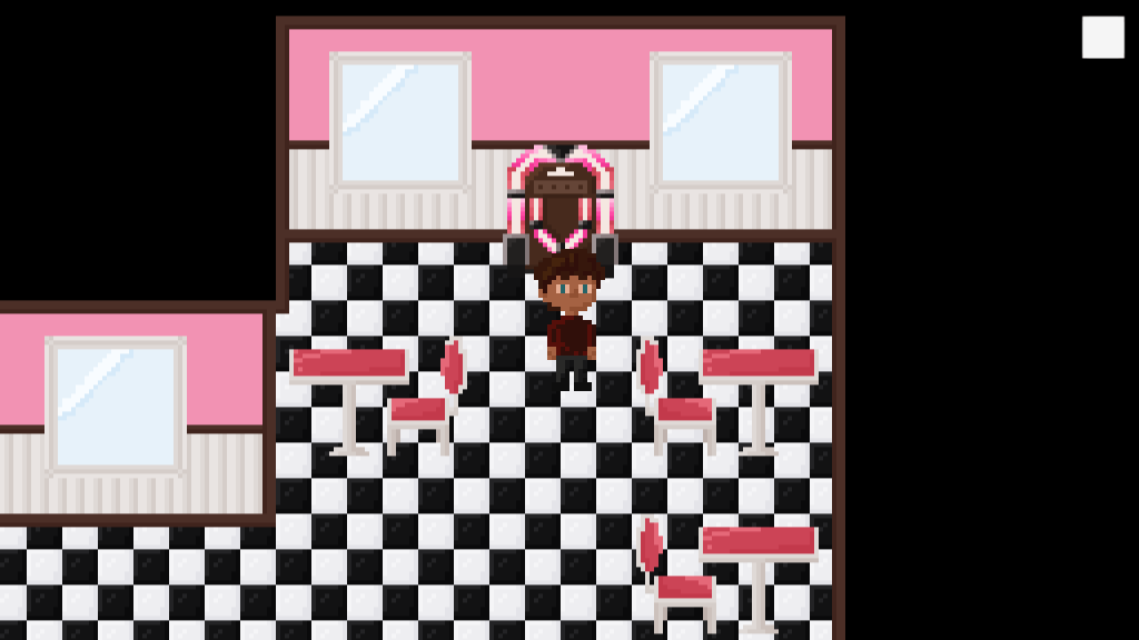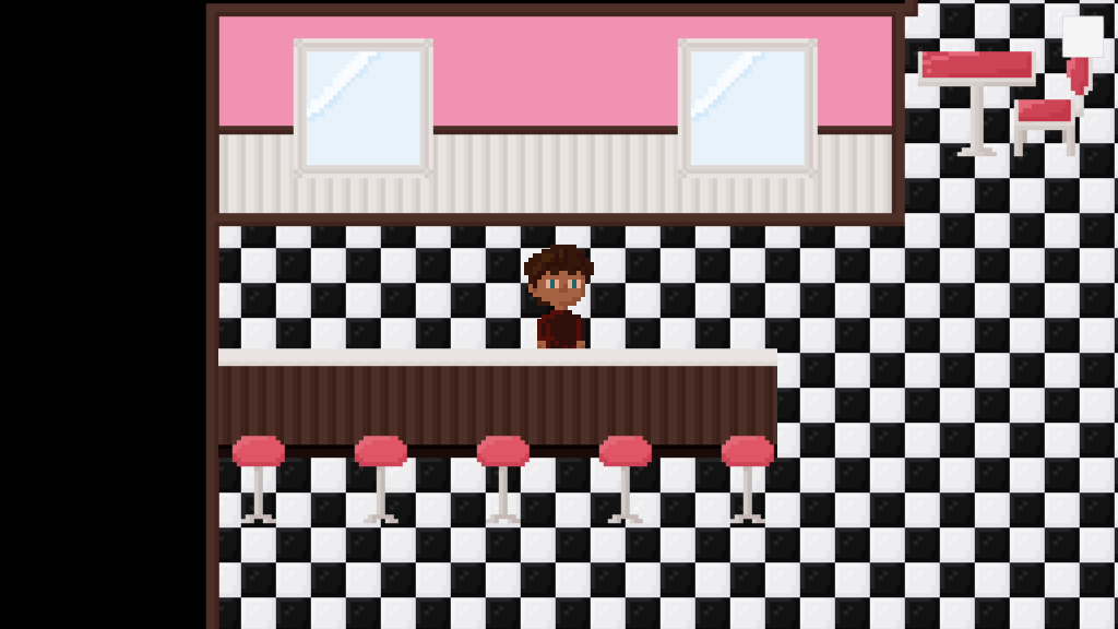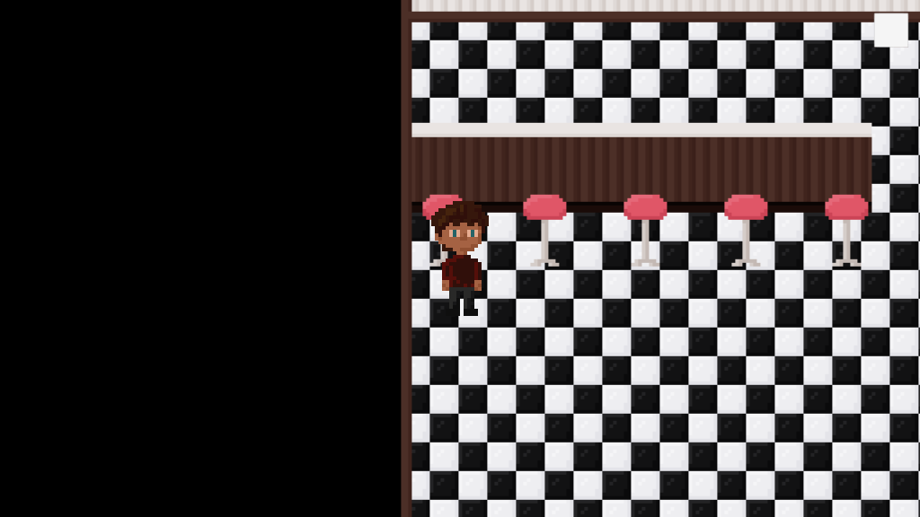I redid the tables to add some shadows to it. I also drew chairs and windows and implemented them all into the game. Most of the interior is now decorated, I’m only missing the front part of it. I might place tables there as well, but I do want to try to draw some of those classic booths, because I think that would look really cool.