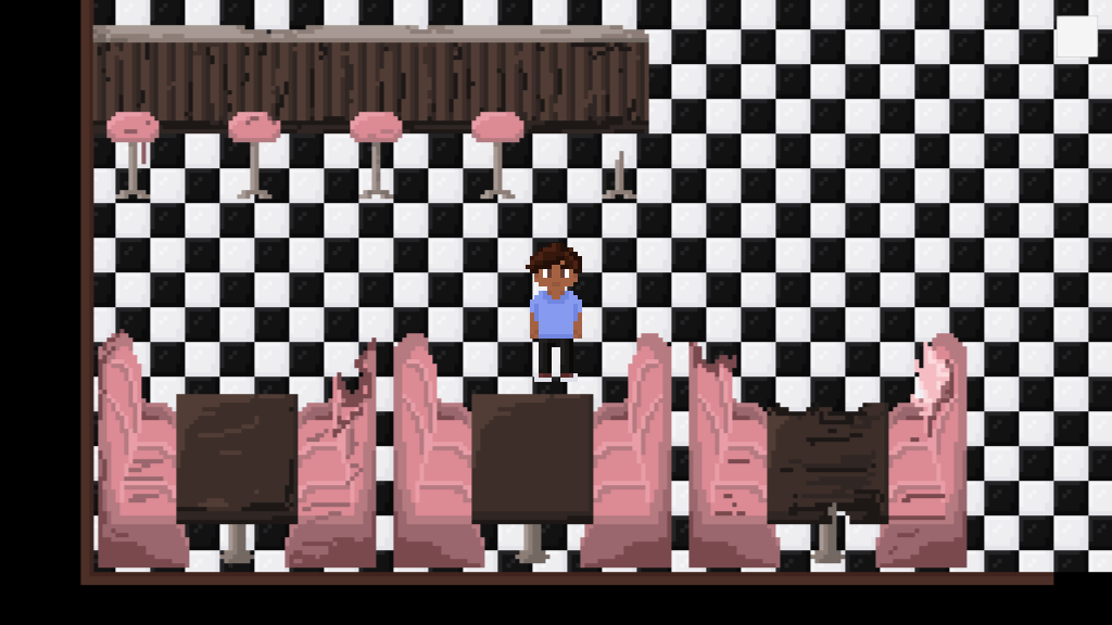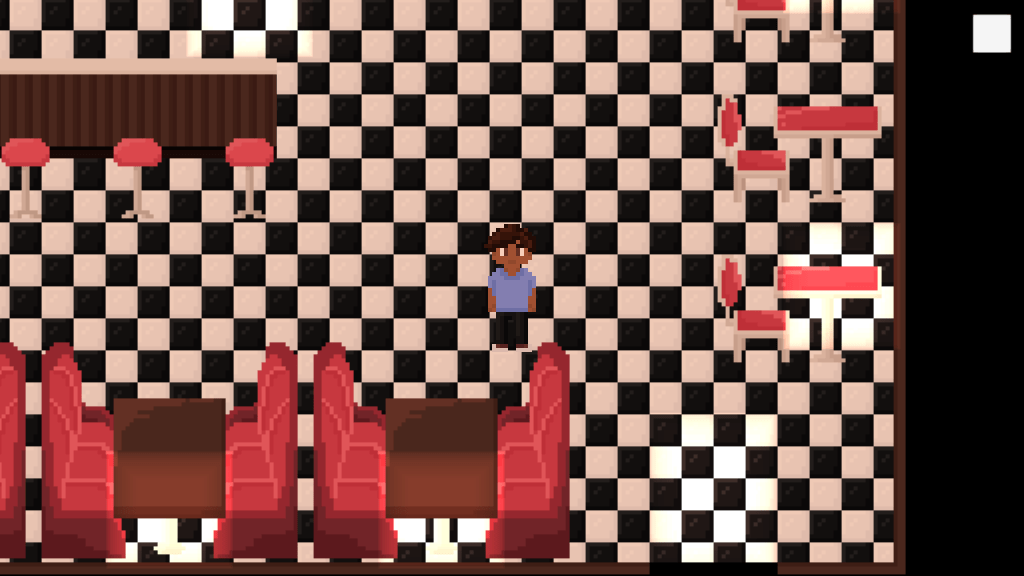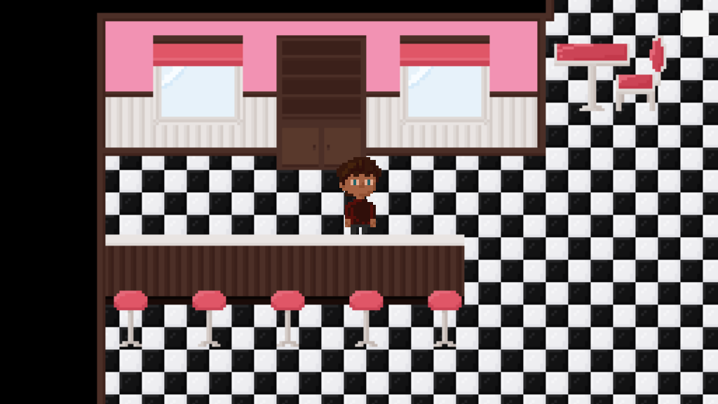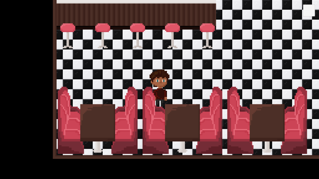 Today I finished decorating the interior of the diner. I managed to draw a nice looking booth and added it in. I also added some curtains to the windows.