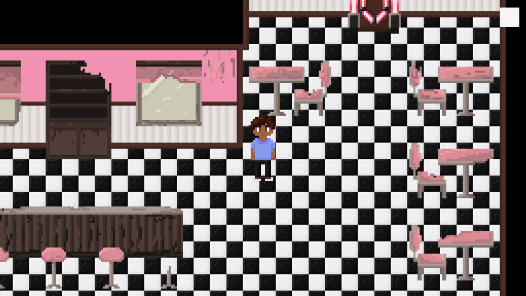 Today I thought about how I’ll make the interior look post-apocalyptic. I’ve decided I’ll keep the changes fairly simple- I’ll make all the colors look faded and I’ll remove some parts of the assets to make them look broken. I won’t change the entire layout of the diner, but I might add in some extra assets that have been left in the diner over time, or move a chair or two.
