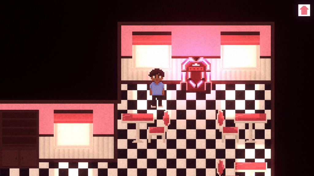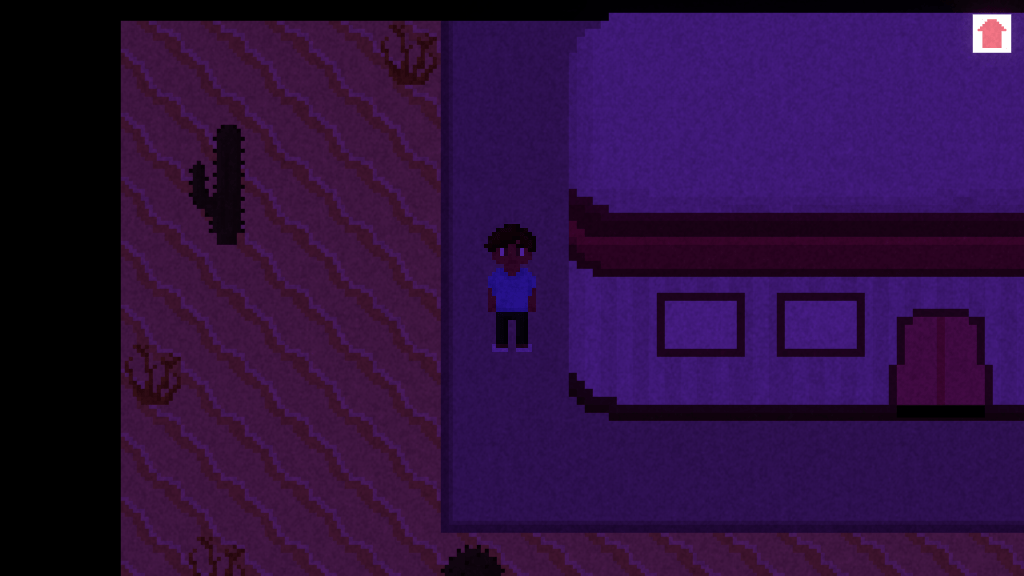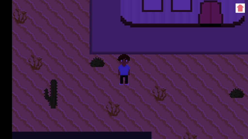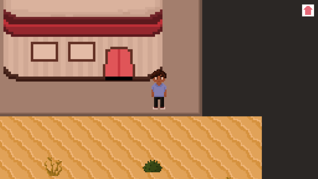 I also noticed a bug in one of my scripts, the one that handles the interior switch. What I want is that the player can only switch songs on the jukebox when in range of the thing, but the script allowed the player to just switch whenever. This is because I forgot to add a void OnTriggerEnter2D to the thing. I’m pretty sure I made the exact same mistake during BPW 1, so that’s funny. It’s fixed now, and I also made a message at the bottom of the screen pop up when the player is in range, which says “Click to switch songs!”. Another small change I made was add a little home button in the right corner instead of just a plain white square.